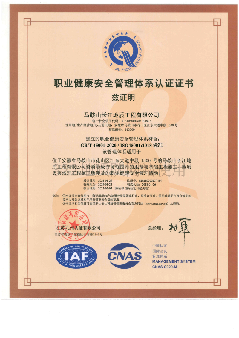 • 馬鞍山長江地質工程有限公司職業(yè)健...