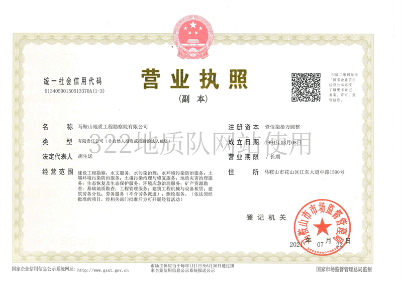 • 馬鞍山工程勘察院有限公司營業(yè)執(zhí)照